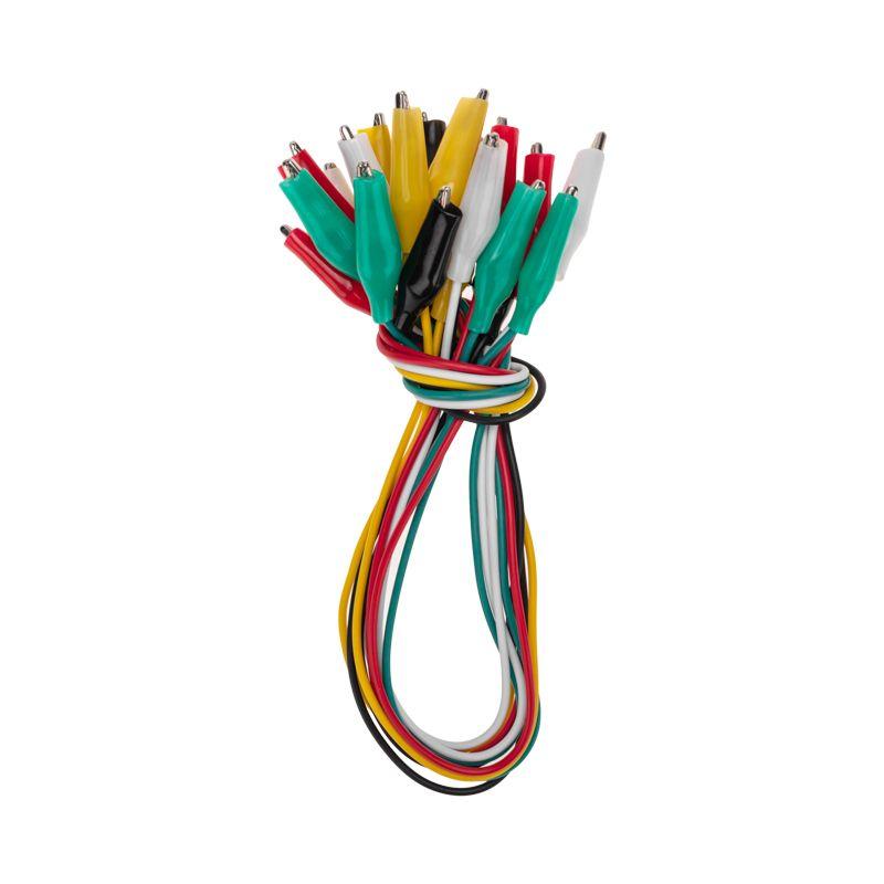 Зажимы «крокодил» с проводом предназначены для оперативного соединения или разъединения контактов при выполнении измерительных работ или при монтаже электрических и слаботочных сетей. Изделие представляет собой изолированный провод длиной 40 мм, с обеих сторон которого располагаются зажимы. Зажим состоит из двух деталей с зубцами, которые в середине скреплены специальным штифтом и могут вращаться вокруг оси соединения. Сжатие зажимов обеспечивается пружиной, вставленной с другой стороны штифта Контактная часть изделия изготавливается из стали с никелированным покрытием и полностью закрыта изолятором. Для обеспечения безопасного использования предусмотрена изоляция из ПВХ, которая исключает случайный контакт с другими токоведущими частями и защищает пользователя от поражения электрическим током. Цвета изолятора – черный, белый, желтый, красный, зеленый. Набор состоит из 10 пар зажимов (по 2 пары каждого цвета). Цена указана за упаковку. Минимальная партия отгрузки 1 упаковка. Конструкция изделия проста и надежна, что гарантирует его использование в течение длительного времени без потери функциональных свойств.