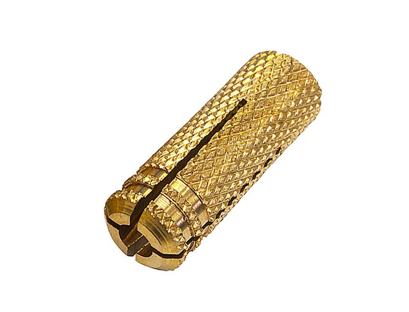 Анкер забиваемый латунный М8 применяется для монтажа различных конструкций в полнотелые кирпич, бетон, природный камень. С анкером необходимо использовать резьбовые изделия (болты, шпильки, винты) диаметром М8 Анкер латунный М8 изготовлен из латуни и имеет высокую устойчивость к коррозии. Часто применяется при работах во влажных условиях (напимер, монтаже закапываемых инженерных систем). Латунная цанга М8 имеет диаметр 10 мм и длину 30 мм (внешние размеры). Для отверстия применяется бур диаметром 10. Глубина отверстия должна быть не менее 30. Забиваемый анкер латунный предназначен для нагрузок (для бетона B25) на вырыв до 1,5 кН и на срез до 1,5 кН.