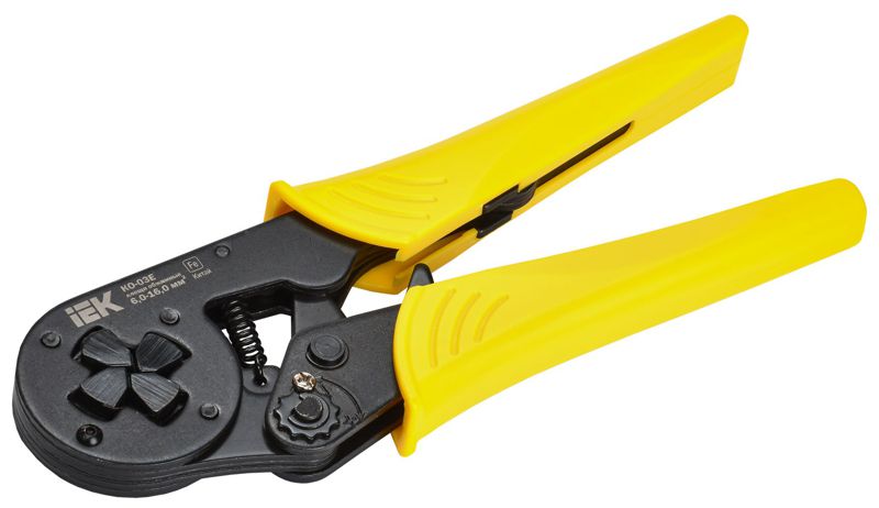 Клещи обжимные КО-03E имеют квадратный профиль обжима и предназначены для опрессовки наконечников-гильз Е, НГИ2 и НГ сечением от 6,0 до 16,0 мм2. Клещи, изготовленные из 3-мм закаленной стали, имеют храповой механизм, удобные ручки, саморегулирующуюся матрицу, а также оборудованы специальным приспособлением, позволяющим разблокировать их из любого положения. Эргономичный дизайн, небольшие размеры и вес, простота и надежность в обращении делают работу с этими клещами не только быстрой и удобной, но и приятной.