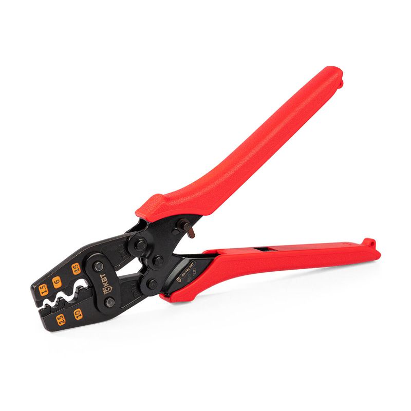 • Диапазон сечений: медные наконечники 1.5–16 мм2 • 5-ти позиционные опрессующие губки • Опрессовка наконечников и гильз любого стандарта • Клиновидный обжим • Инструмент предназначен для опрессовки однопроволочных и многопроволочных жил • Скрытый храповой механизм обеспечивает более высокое передаточное усилие и гарантирует полный цикл опрессовки • Рычаг для экстренной разблокировки матриц • Обработка поверхности: воронение • Мощная, усиленная конструкция • Эргономичные рукоятки • Вес: 390 г • Длина: 245 мм