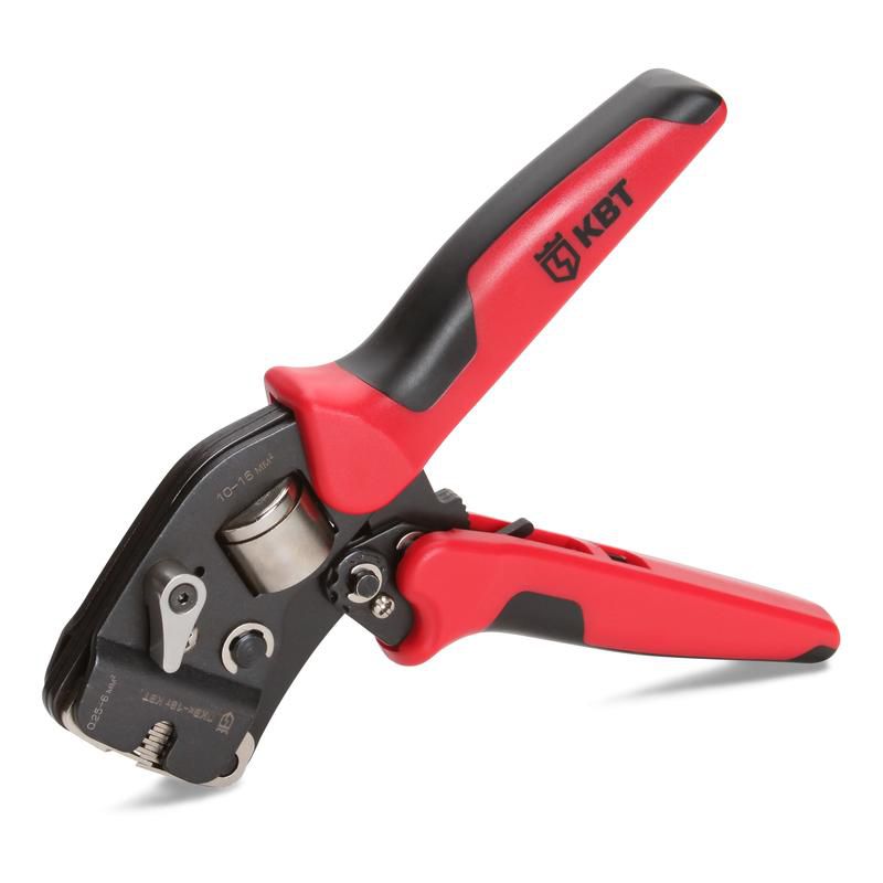 • Диапазон сечений втулочных наконечников: • НШВИ, НШВ: 0.25–16 мм2 • НШВИ(2): 2х0.5–2х10 мм2 • Уникальная модель с торцевой матрицей обжима • Инструмент рекомендован для монтажа коротких выходов проводов из распределительных коробок или электрических щитков, там, где использование аналогичных инструментов с боковой матрицей затруднено или невозможно • Универсальный инструмент для опрессовки практически всего ряда втулочных наконечников • Одна торцевая саморегулирующаяся матрица на все типоразмеры диапазона • Ширина обжимной матрицы: 16 мм • Инструмент перекрывает диапазон из 19 размеров втулочных наконечников • Переключатель прижимного усилия матрицы • Два положения переключателя диапазона сечений: • левое положение - опрессовка наконечников сечений 0.25–6.0 мм2 • правое положение - опрессовка наконечников сечений 10–16 мм2 • Квадратный профиль обжима с рифлением • Усовершенствованный храповой механизм, гарантирующий полный цикл опрессовки • Рычаг разблокировки храпового механизма • Двухкомпонентные эргономичные рукоятки со вставками из мягкой термопластрезины • Вес: 506 г • Длина: 200 мм