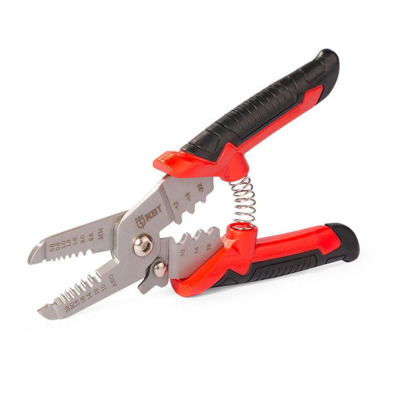 • 4 в 1: • снятие изоляции c проводов сечением 0.35–6.0 мм2 • резка проводов O до 6 мм • опрессовка неизолированных наконечников сечением 1.5–6 мм2 • пассатижи • Семипозиционные прецизионно заточенные лезвия для снятия изоляции • Материал корпуса: нержавеющая сталь 4CR13 • Эргономичные двухкомпонентные рукоятки со вставками из нескользящей TPR-резины • Возвратная пружина • Блокиратор рукояток • Соединительный винт с возможностью регулировки • Вес: 175 г • Длина: 180 мм