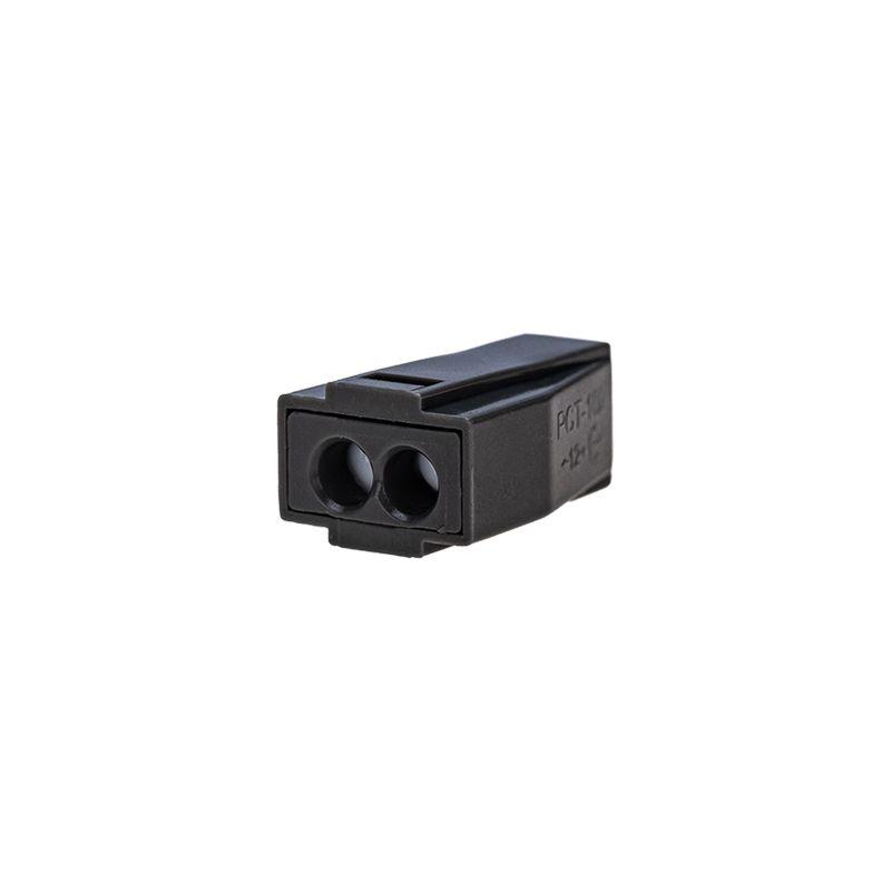 Электромонтажные экспресс-клеммы предназначены для соединения 2 проводов между собой (алюминиевые и медные как одножильные, так и многожильные). Подключение осуществляется способом проталкивания до упора очищенного от изоляции провода в свободное гнездо. Клеммы наполнены специальной контактной пастой, которая создает барьер для попадания влаги внутрь разъёма, а так же препятствует окислению проводников. Клемма имеет 2 контакта, напряжение 400 В, Максимальным током 24А, Поддерживаемое сечение: от 1,0 до 2,5 мм2. Рабочая температура: -45?C to +80?C