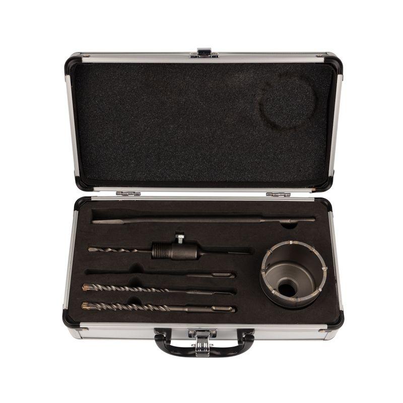 Набор KRANZ состоит из 5 предметов, которые применяются для установки подрозетников, а также при долбежных и демонтажных работах по кирпичной кладке, бетону, природному и искусственному камню. Предназначены для использования с перфораторами с типом крепления SDS PLUS. Для удобства транспортировки и хранения набор поставляется в алюминиевом кейсе Комплектация: Коронка по бетону в сборе М22х68 мм - 1 шт. Зубило плоское 14х20х250 мм - 1 шт. Бур по бетону 6x160 мм - 1 шт. Бур по бетону 8x160 мм - 1 шт. Бур по бетону 10x160 мм - 1 шт.