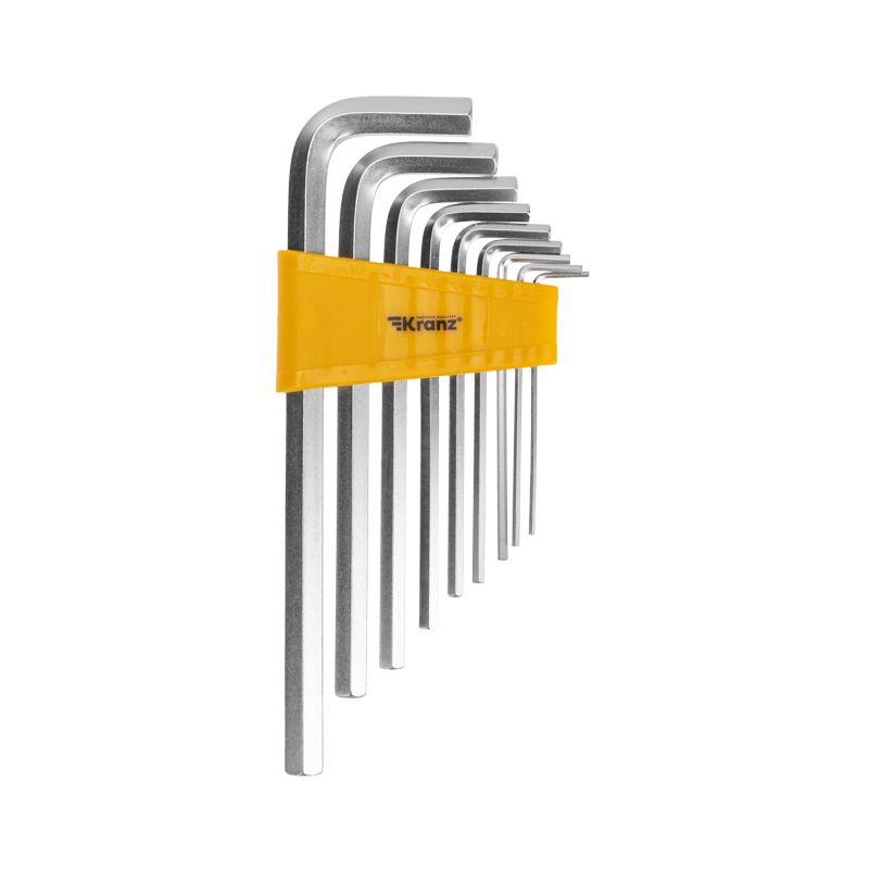 Набор ключей имбусовых KRANZ предназначен для работы с крепежом, оснащенным шлицом HEX (шестигранником). Ключи имеют Г-образную форму, изготовлены из высококачественной стали. Антикоррозийное покрытие обеспечивает надежную защиту инструмента от негативных внешних воздействий. Это значительно продлевает срок службы. Технические характеристики: Тип: набор HEX Форм-фактор: Г-образный Минимальный размер: 2 мм Максимальный размер: 12 мм Тип ключей: удлиненные Количество в наборе: 9 Марка стали: CrV Состав: 2-2,5-3-4-5-6-8-10-12 мм Ключи изготовлены из хромованадиевой стали Твердость рабочей части: 48-50 HRС Для удобства хранения ключи поставляются в пластиковом чехле