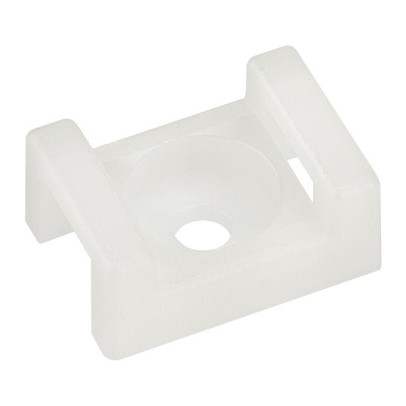 Площадка 22x16 мм для крепления стяжки используется при выполнении электромонтажных работ. Выполнена из белого пластика и оснащена специальным отверстием под хомут. С помощью площадки и одного винта или самореза можно прикрепить к любой поверхности пучки проводов, стянутые хомутом. Это позволяет пользователю произвести как временную, так и постоянную организацию кабельной проводки. Может также использоваться для крепления других легких предметов.