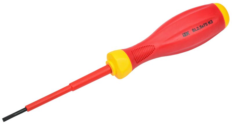 Диэлектрическая крестообразная отвертка К3 (Expert) предназначена для электромонтажных работ под напряжением до 1000В, изготовлена из хром-ванадиевой стали. Рукоятка из 2-х-слойной термопластичной резины PP+TPR.