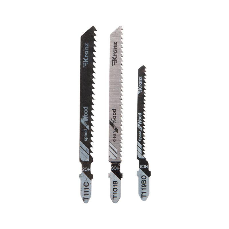 Набор полотен для электролобзика предназначен для распила мягкой древесины, фанеры, ДСП, столярных плит, ДВП определенной толщины, включает также пилку по оргстеклу. Будет полезен профессиональным мастерам при выполнении столярных, ремонтных и строительных работ. Пилки выполнены из высокоуглеродистой стали, поэтому сочетают в себе такие свойства, как прочность, износостойкость и пластичность. Подходят для быстрого, чистого, а также фигурного реза. Улучшенная закалка токами высокой частоты увеличивает твердость зубьев полотен и обеспечивает высокий ресурс. Универсальный Т-образный хвостовик подходит для установки на большинство моделей электролобзиков. Набор включает в себя полотна с индексами T101B/T111C/T119BO (3 шт.).
