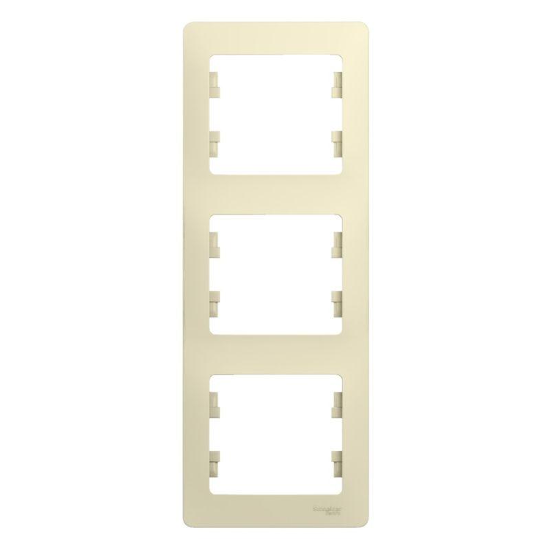 Рамка Systeme Electric (ранее Schneider Electric) серии Glossa (цвет бежевый) трёхместная. Устанавливается в вертикальном положении. Выполнена из материала PС+ASA, стойкого к УФ-излучению и появлению царапин. Позволяет гармонично вписать электроустановочное изделие в интерьер помещения.