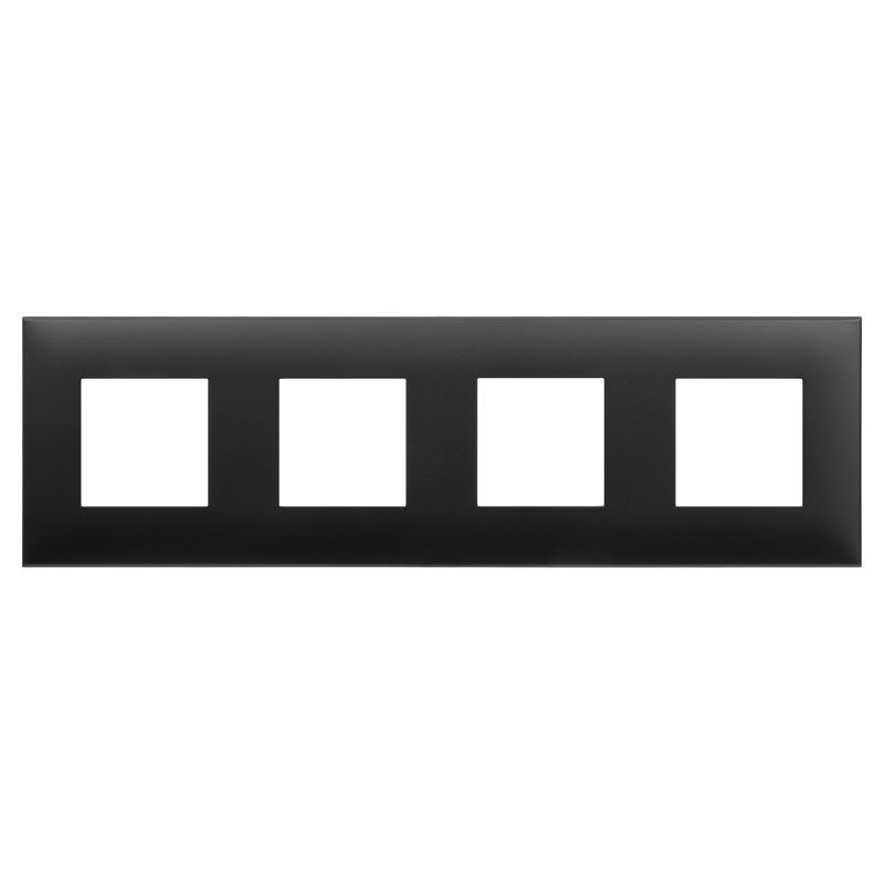 Рамки ДКС, разработанные студией Артемия Лебедева, предназначены для декоративного оформления электроустановочных изделий. Цвет рамки: "Черный матовый" - темный, манящий, приглушающий свет акцент. Отсутствие следов от прикосновений на поверхности изделий дает ощущение премиального вида в интерьере. Линейка сочетается с текстурными сдержанными покрытиями, интерьерами в различных стилях от минимализма и контемпорари до арт-деко и гранж, на стенах из необработанного кирпича в помещениях лофт. В рамке предусмотрено 4 поста под ЭУИ (8 модулей). Рамка может быть размещена как горизонтально, так и вертикально. Габаритные размеры: 300х90 мм. Материал – термопласт.