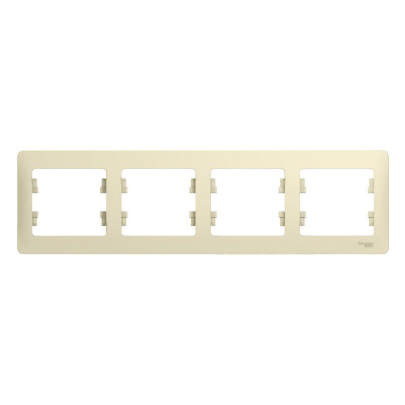 Рамка Systeme Electric серии Glossa (цвет бежевый) четырёхместная. Устанавливается в горизонтальном положении. Выполнена из материала PС+ASA, стойкого к УФ-излучению и появлению царапин. Позволяет гармонично вписать электроустановочное изделие в интерьер помещения.