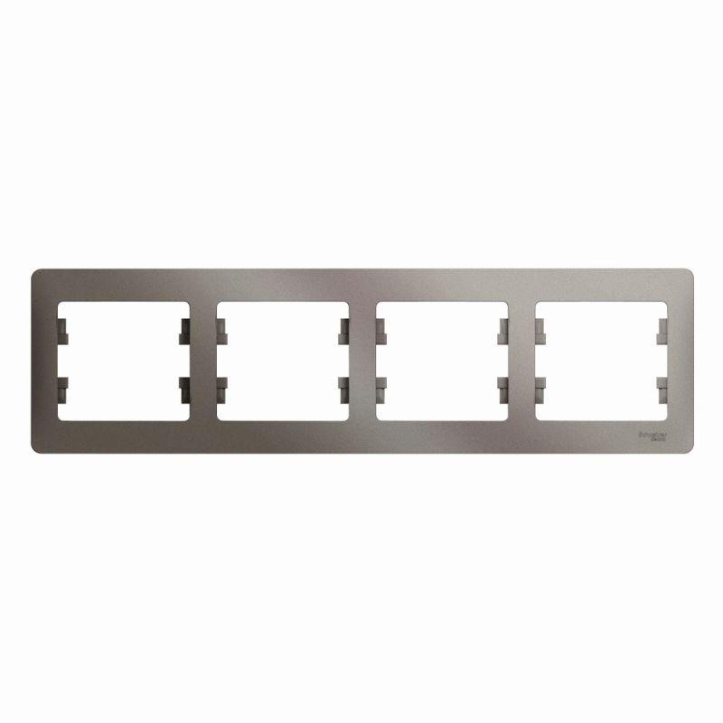 Рамка Systeme Electric (ранее Schneider Electric) серии Glossa (цвет платина) четырёхместная. Устанавливается в горизонтальном положении. Выполнена из материала PС+ASA, стойкого к УФ-излучению и появлению царапин. Позволяет гармонично вписать электроустановочное изделие в интерьер помещения.