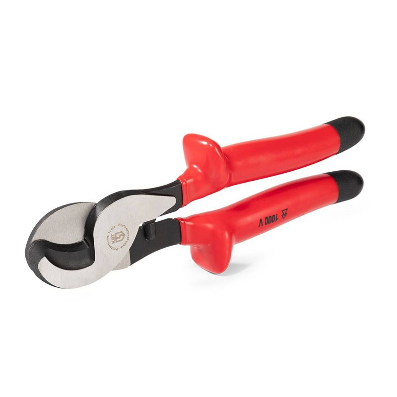 • Для работы под напряжением до 1000 В • Диапазон резки: кабели O до 16 мм • Твердость лезвий HRC 32...40 • Материал рукояток: двухслойная диэлектрическая пластизоль. Внутренняя изоляция – желтого цвета, внешний слой изоляции – красного цвета • Специальные упоры на рукоятках обеспечивают защиту от соскальзывания • Усиленная кованая конструкция • Резка провода до 70 мм2 • Длина 240 мм • Вес 440 г