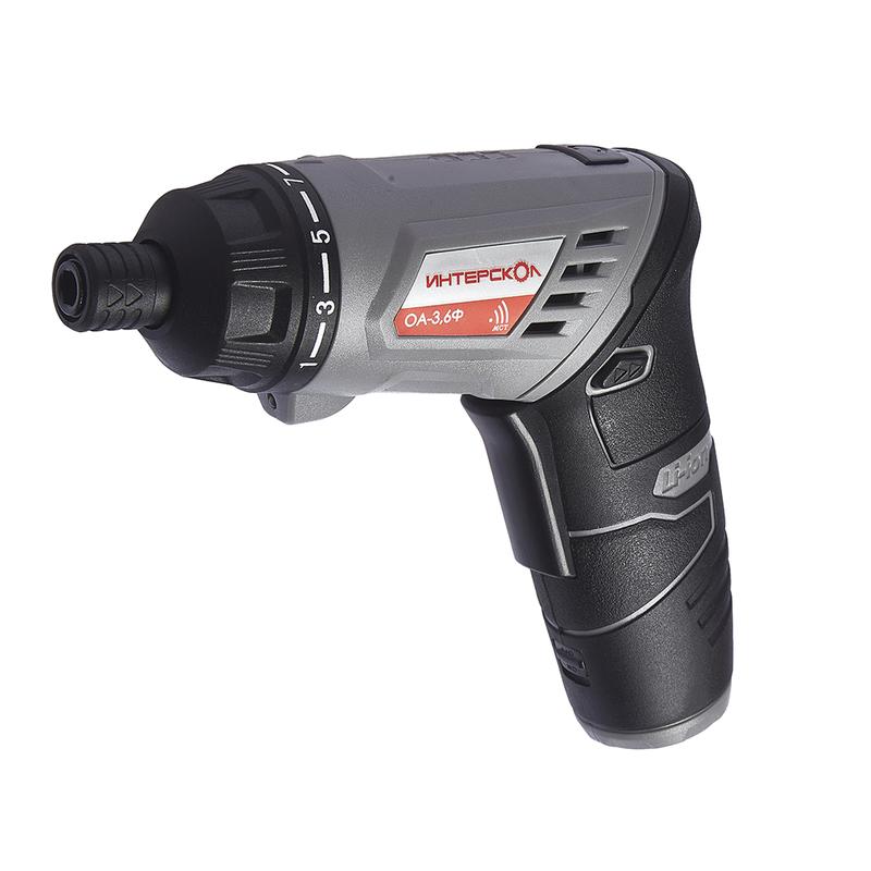 Отвертка-трансформер + фонарь ИНТЕРСКОЛ ОА-3,6Ф Interskol Низкий саморазряд, отсутствие эффекта памяти, высокая энергоемкость; • муфта ограничения усилия с 15+1; • компактная, с трансформируемой рукояткой, с автолоком шпинделя, оснащена механическим зажимом HEX 1/4”; • мощный светодиодный фонарь – до 24 часов на одной зарядке.