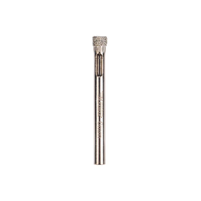 Алмазное сверло диаметром 6 мм предназначено для работ с керамогранитом, керамикой и стеклом. Представляет собой трубчатое сверло, выполненное в виде полого цилиндра. Используется совместно с дрелями или шуруповертами. Цилиндрический хвостовик способствует надежному креплению сверла в патроне. Режущая кромка покрыта промышленными алмазами высокой твердости, обеспечивающими точное и чистое сверление отверстий без трещин и сколов на поверхности материала. Для предотвращения перегрева в процессе сверления алмазные сверла необходимо постоянно охлаждать водой. При перегреве алмазы легко отделяются от основы, поэтому сверлить необходимо на малых оборотах.