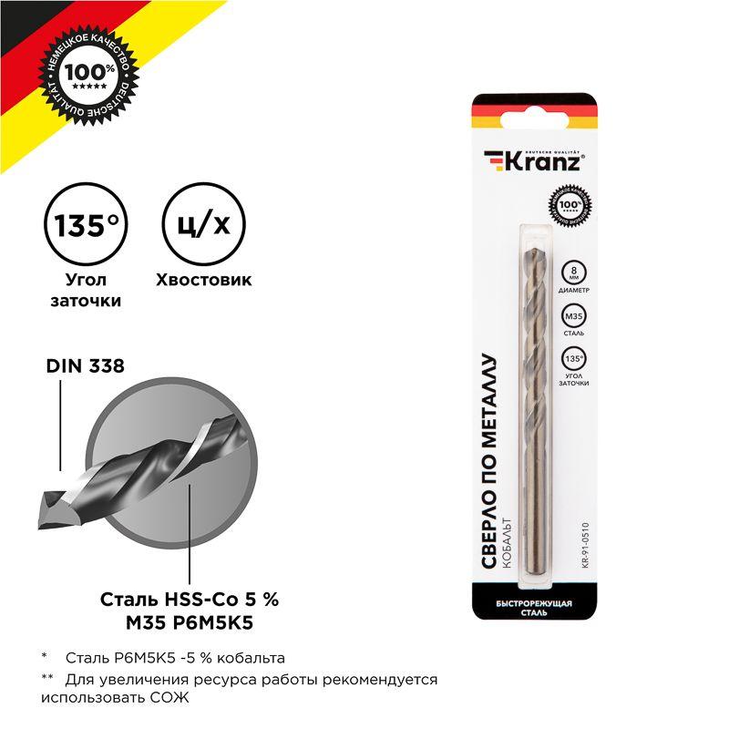 Сверло по металлу KRANZ изготовлено по стандарту DIN 338 и используется для сверления отверстий в таких материалах, как сталь, чугун, нержавеющая сталь, легированные и цветные металлы. Имеет цилиндрический хвостовик, применяется совместно с дрелями, шуруповертами и станками. Изделие выполнено из качественной быстрорежущей стали М35 (Р6М5К5) с добавлением 5% кобальта, что обеспечивает стойкость к перегреву, долгий срок службы и высокую эффективность. Благодаря заточке режущей части под углом 135 градусов достигается более эффективный вход оснастки в материал, что приводит к увеличению ресурса эксплуатации и сокращению износа сверла. Благодяря вышлифованному профилю сверло сохраняет точное положение во время сверления, что гарантирует получение ровных и аккуратных отверстий без трещин и сколов.