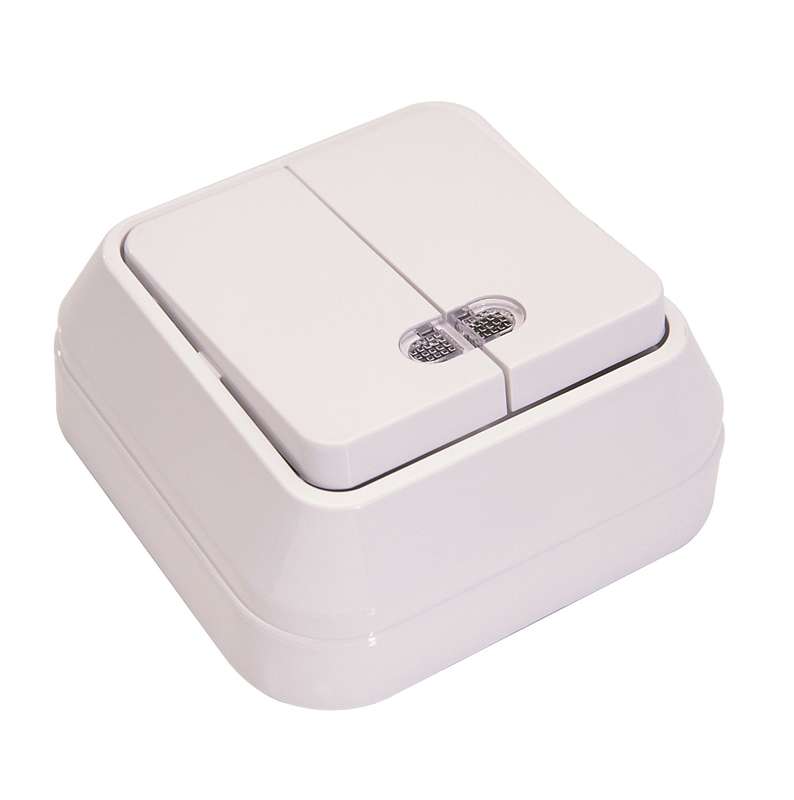 • НАЗНАЧЕНИЕ Выключатель 2-клавишный это двухпозиционный коммутационный аппарат с замыкающими (нормально-разомкнутыми) контактами, предназначенный для работы в сетях с напряжением до 1000 вольт, не предназначенный для отключения токов короткого замыкания, без специальных устройств дугогашения, местного управления, с ручным приводом. • ОБЛАСТЬ ПРИМЕНЕНИЯ В основном применяются для включения и выключения освещения в бытовых и производственных условиях. • ПРИНЦИП ДЕЙСТВИЯ Принцип действия основан на коммутации контактов механическим способом (нажатием) , при этом положения коммутации фиксированы и позволяют находится в этом режиме достаточно долго, вплоть до следующего воздействия. • ДОПОЛНИТЕЛЬНЫЕ ПРИНАДЛЕЖНОСТИ ИЛИ АКСЕССУАРЫ