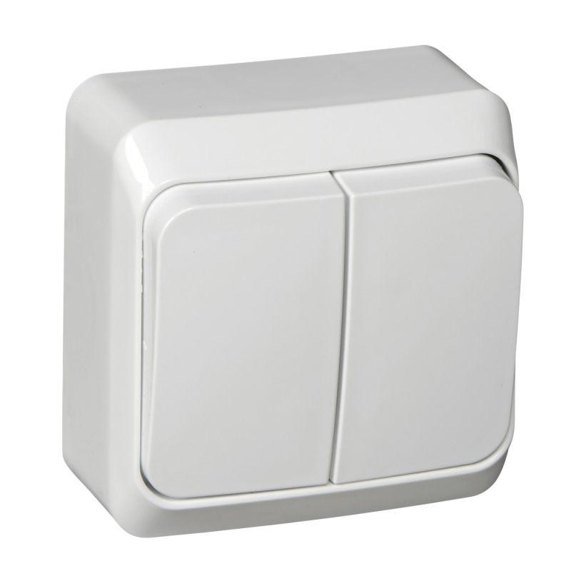 Выключатель Systeme Electric (ранее Schneider Electric) ЭТЮД (белый, открытой установки) двухклавишный предназначен для применения в сетях до 250В, на ток до 10А. Наличие подсветки делает его легко находимым при отсутствии освещения. Две клавиши позволяют управлять двумя источниками света с одной точки. Сделано в России.
