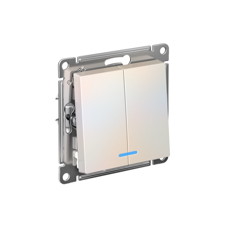 Механизм Systeme Electric (ранее Schneider Electric) серии AtlasDesign в цвете жемчуг выключателя 2-клавишного c подсветкой подходит для сетей 250 В, на ток 10 А. Благодаря светодиодной подсветке синего цвета изделие легко найти в темноте. Двухклавишный выключатель позволяет управлять двумя источниками света с одной точки. Лицевые детали из качественного ABS-пластика, устойчивого к царапинам и УФ-излучению. Усиленные прямые монтажные лапки для лучшей фиксации механизма в монтажной коробке.